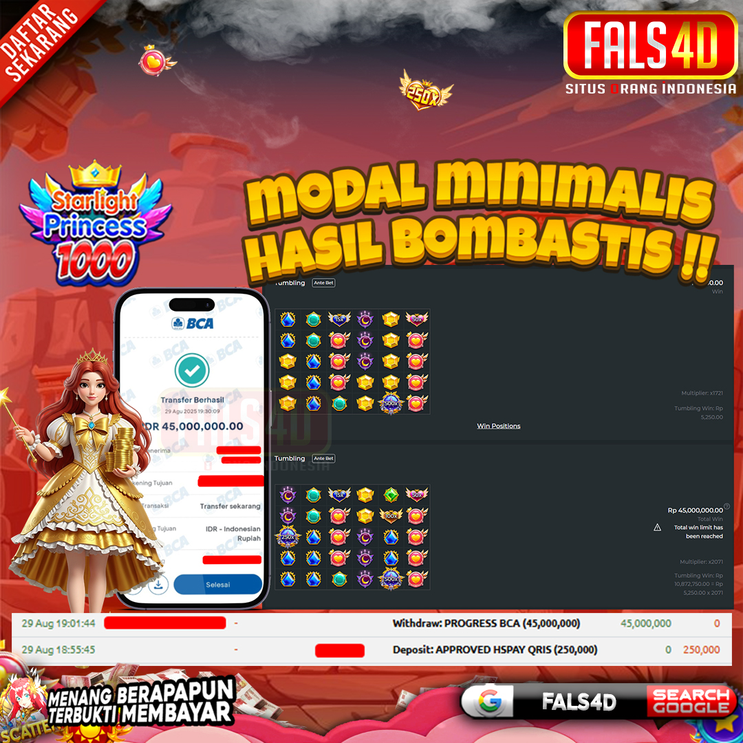 Kisah sukses dari ID JA****676 ini hanyalah salah satu contoh dari banyak pengalaman positif di FALS4D. Dengan layanan berkualitas dan pilihan permainan lengkap, FALS4D menjadi destinasi favorit bagi para pecinta hiburan online di Indonesia.