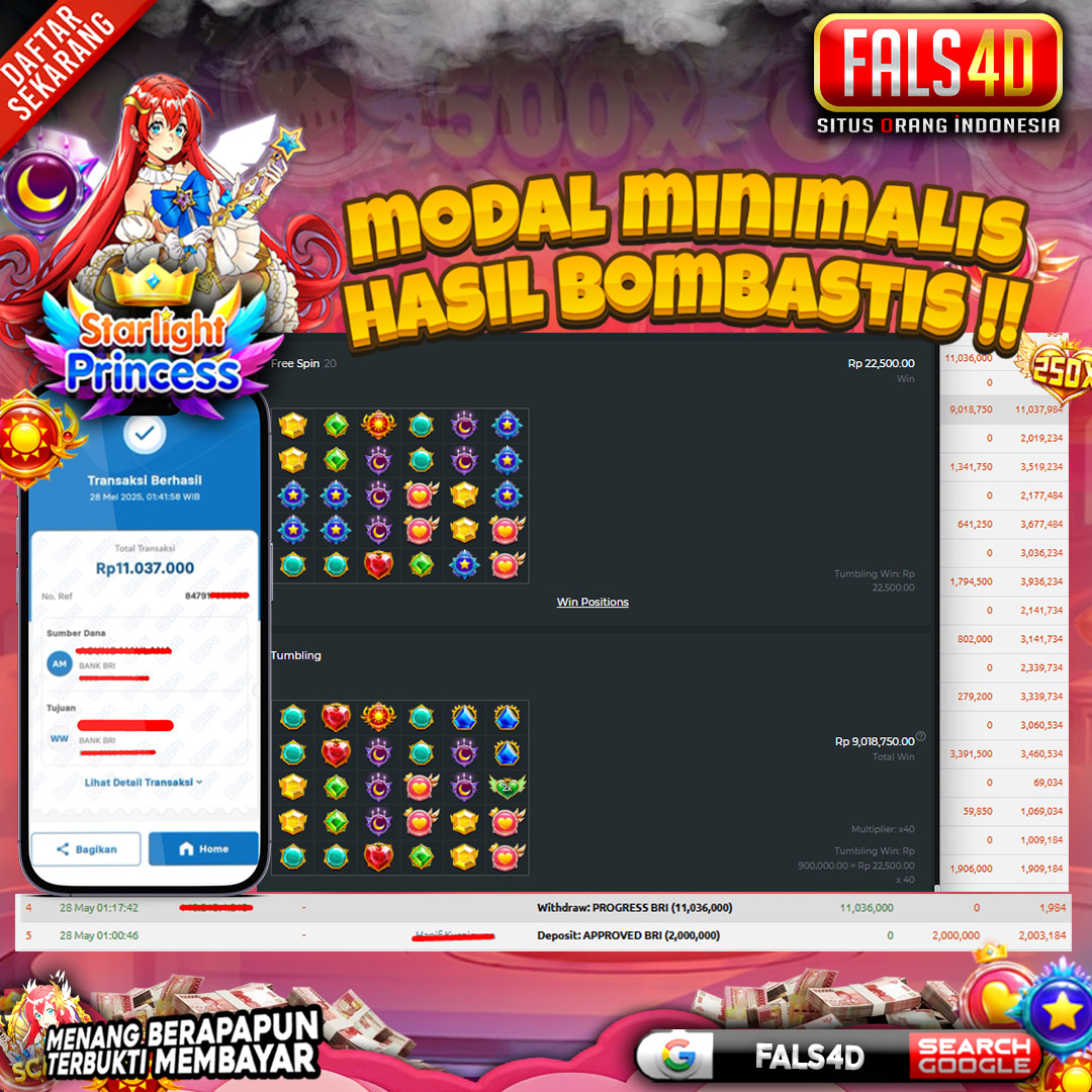 Kisah kemenangan ini menjadi bukti nyata bahwa modal kecil sekalipun bisa menghasilkan keuntungan besar jika dimainkan di situs slot yang tepat. FALS4D telah lama dikenal sebagai situs slot gacor yang menyediakan permainan fair, peluang menang tinggi, serta pengalaman bermain yang menguntungkan. Tidak heran jika banyak member setia terus mempercayakan permainan slot mereka di sini.
